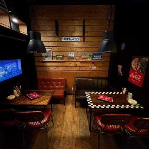 【秘密基地感満載】喧騒から離れてゆったりと過ごせるソファー席完備!特別感を味わえる、自分だけの特等席のような空間でアメリカンフードやドリンクをお楽しみくださいませ!